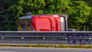 · Bij een ongeval is een bestelbusje zaterdagmiddag op z'n kant op de snelweg terecht gekomen.