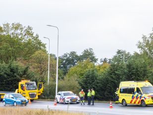 · De bestuurster en een kindje in de auto zijn ter plaatse nagekeken door ambulancepersoneel.