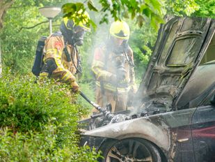 · De brandweerlieden moesten de motorkap van de auto openzagen om de brand effectief te kunnen bestrijden.