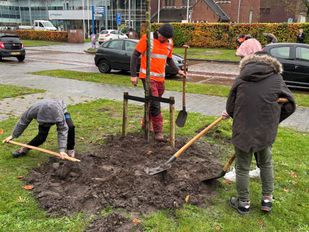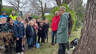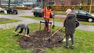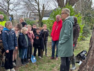 · Leerlingen van basisschool Klim-op hielpen de gemeente bomen planten in Hoogerheide op Boomfeestdag.