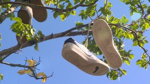 · Het is een opvallend plaatje in het skatepark op de Boulevard in Bergen op Zoom. Daar hangen meerdere bomen vol met schoenen.