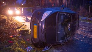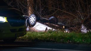 · Op de afrit van de A4 bij Bergen op Zoom is woensdagavond een auto uit de bocht gevlogen en op zijn kop in de sloot terechtgekomen.