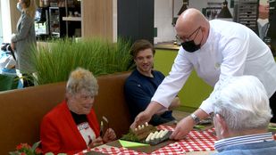 · Bewoners van de Bosgaard krijgen een aspergandel en een 3d-geprinte asperge aangeboden in het kader van ProefMei.