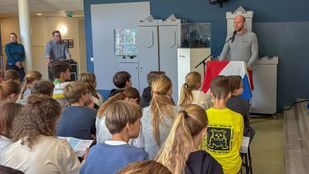 · Groep 8 van basisschool St. Bavo droeg het ambassadeurschap van herdenkingsmonument Vloeiweide over aan groep 7.