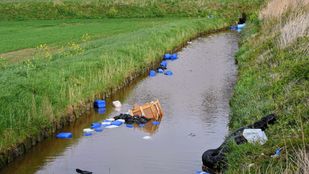 · Wat er precies in de vaten zit is nog niet bekend. Waarschijnlijk gaat het om vloeistoffen voor de productie van synthetische drugs.