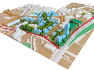 · Het parkeerterrein en de locatie bij het oude politiebureau worden omgevormd tot een groene, stedelijke wijk met 1.500 woningen, inclusief torenflat.