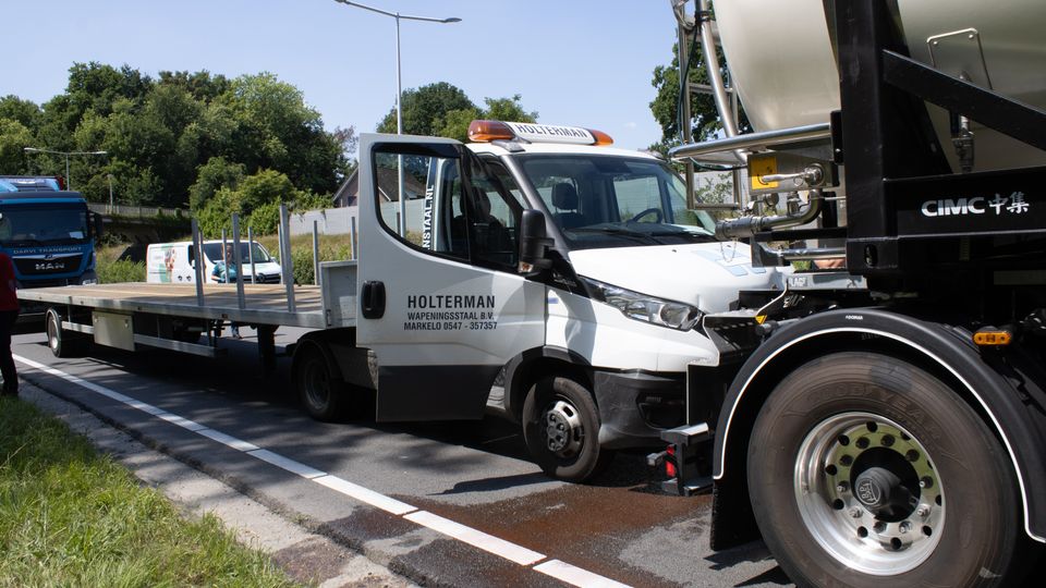 Aanhangwagen en vrachtwagen botsen op elkaar op Randweg-Noord in Bergen op Zoom