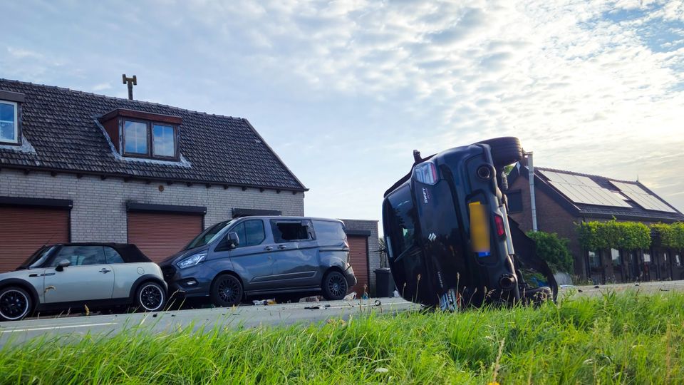 De bestuurder van de personenauto reed in de richting van Zeeland toen het misging. Door de klap raakte de auto zwaar beschadigd en belandde deze op de zijkant. Er raakte niemand gewond bij het incident. Hoe het ongeval precies heeft kunnen gebeuren, is nog onduidelijk.