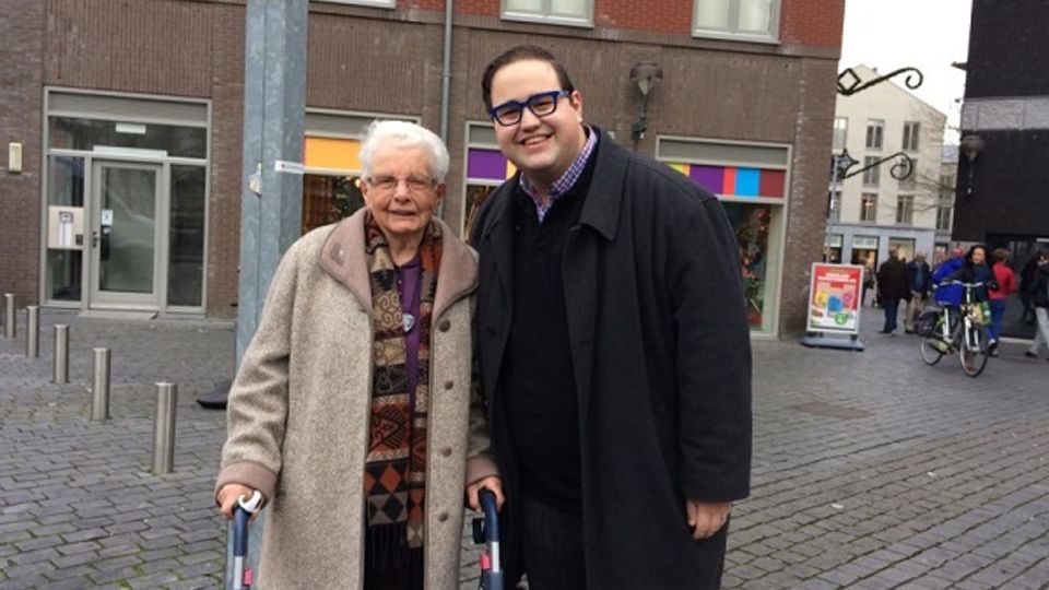 Foto links naar rechts: mw. Schot – de blauw (91) heeft al een aantal keer in de regen gestaan. Stefaan Verheugt (26) maakt zich zorgen.