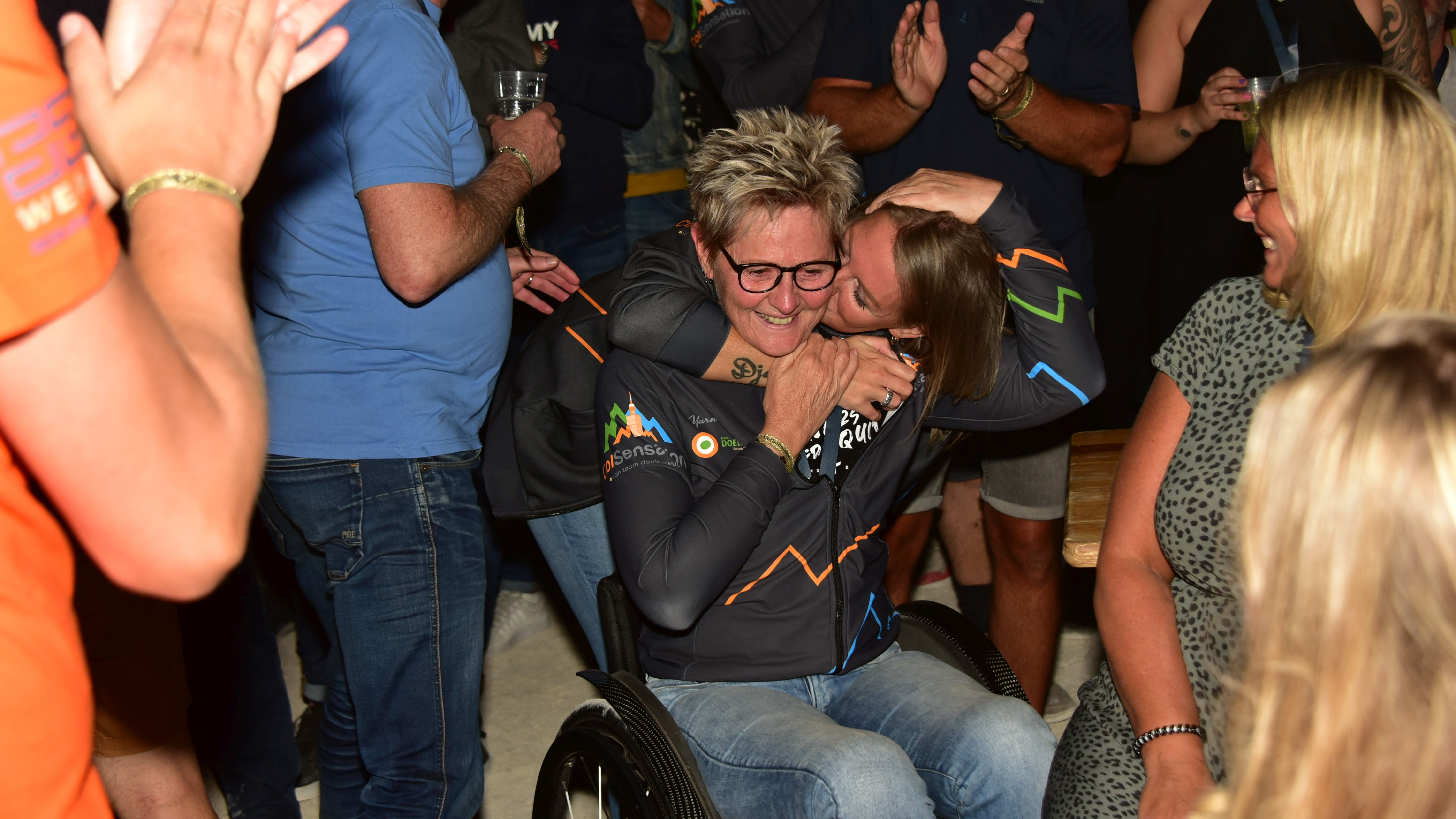 “We hebben dit echt samen gedaan”, vervolgt de Bergse. “En dan niet alleen met mijn clubje, maar echt met iedereen van ColSensation.” Het werd een tocht van negen uur en 23 minuten. “Toen ik aankwam bij de finish was ik echt helemaal naar de klote.” Gelukkig kreeg ze onderweg af en toe wat hulp. “Ruud, een vriend, had een touw bij zich. Zo kon hij mij in de scherpe haarspeldbochten uit de bocht trekken. Dat had me anders echt niet gelukt. Zonder Ruud, Adriënne en Leonie, had ik het echt niet gered. Samen dus, zoals ik al zei.”