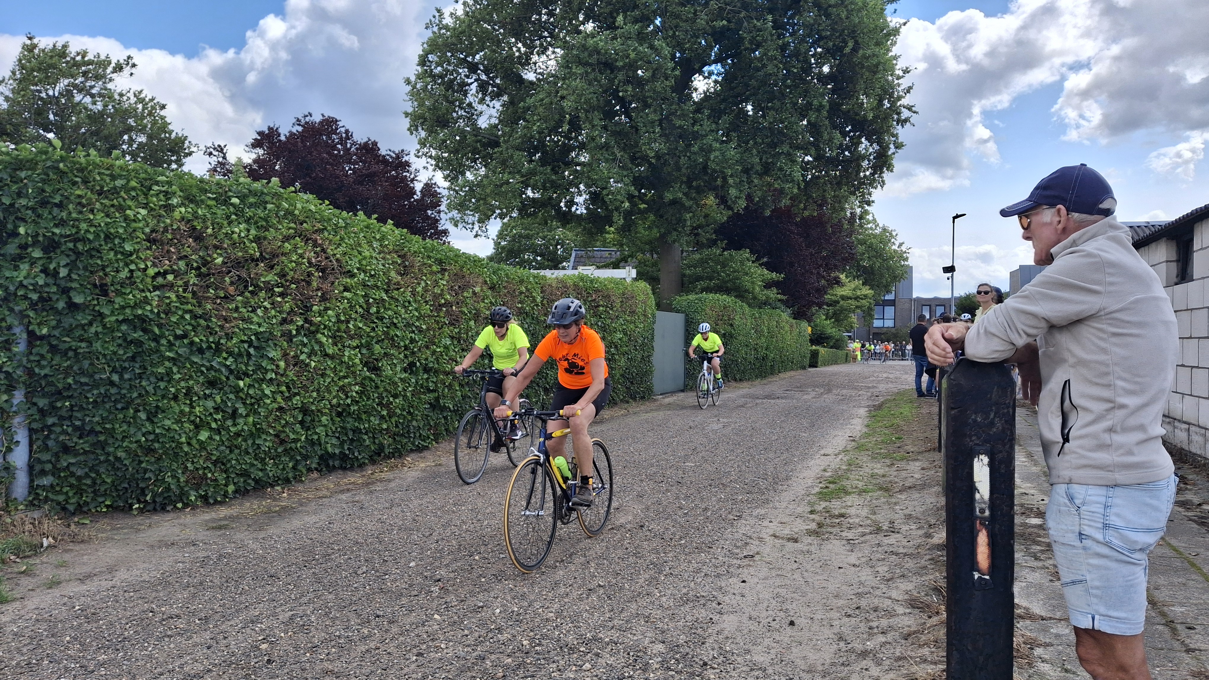 De dame naast haar in het startvak ziet wel een beetje op tegen de wind. “Dat is wel mijn grootste tegenstander”, geeft ze aan. “Ik zal ook wel weer blij zijn als het klaar is.” Toch fietst ze al zo lang mee dat ze inmiddels de tel is kwijtgeraakt. “Ik ga dat vanavond eens opzoeken.” Vaak twijfelt ze of ze wel mee wil doen, want de spanning is haar soms te groot. “Maar als ik dan meedoe denk ik: het is te leuk om niet mee te doen.”