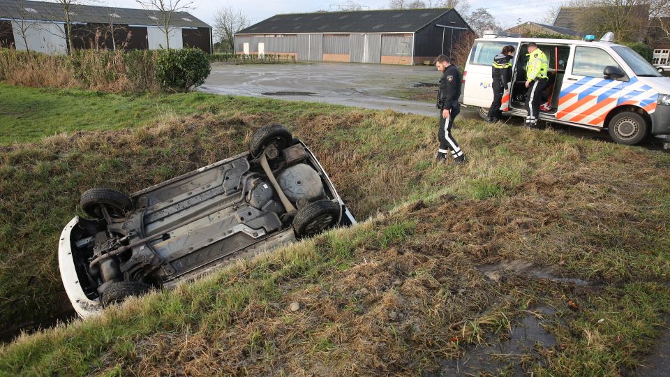 Auto beland in sloot bij Roosendaalseweg Kruisland