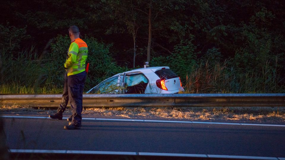 Zaterdagavond is een auto achterstevoren in een sloot belandt. Het eenzijdige ongeval gebeurde op de afrit Bergen op Zoom op de A4.
