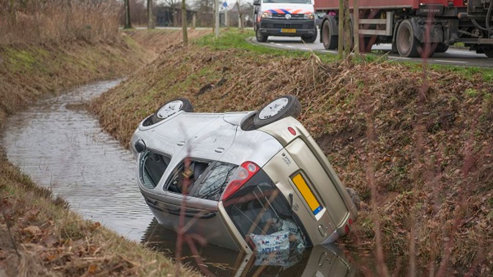 Zaterdagmiddag is een auto op zijn kop in een sloot beland in het buitengebied van Lepelstraat. De bestuurder is gewond geraakt.