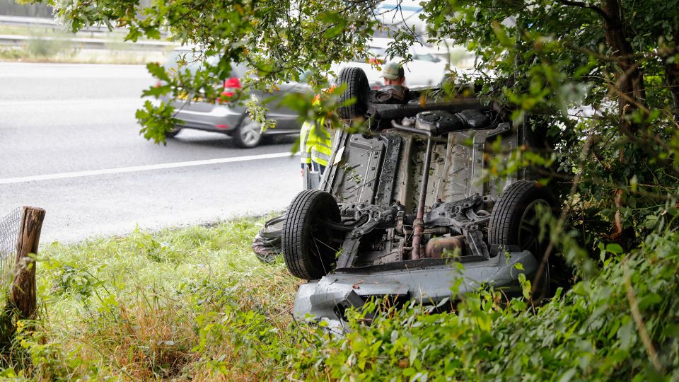 Een auto is donderdagochtend op de snelweg A4 bij Bergen op Zoom van de weg geraakt en op zijn kop beland. Het ongeluk gebeurde ter hoogte van knooppunt Zoomland in de richting van Roosendaal.