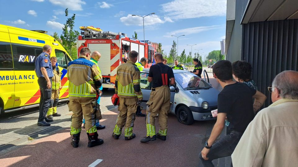 Auto botst tegen gevel van winkel na ongeval in Bergen op Zoom