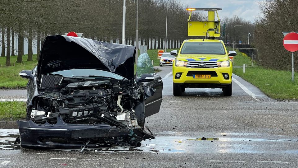 Een zwarte Mercedes auto is woensdagmiddag gecrasht. Dat gebeurde op de afrit van de A58 bij Etten-Leur.
