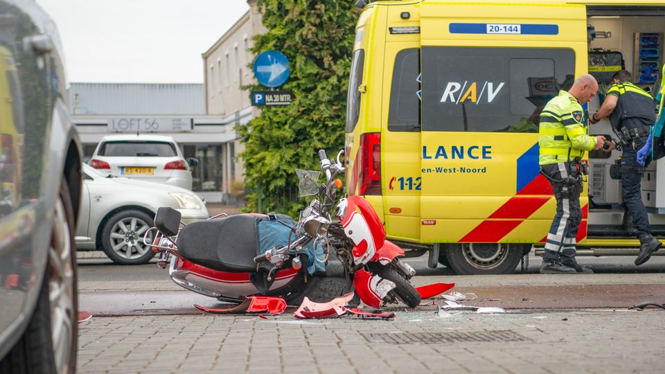 Beide voertuigen raakten ernstig beschadigd door de klap. Ambulancepersoneel heeft de scooterrijder nagekeken, maar over de ernst van zijn verwondingen is niets bekend.