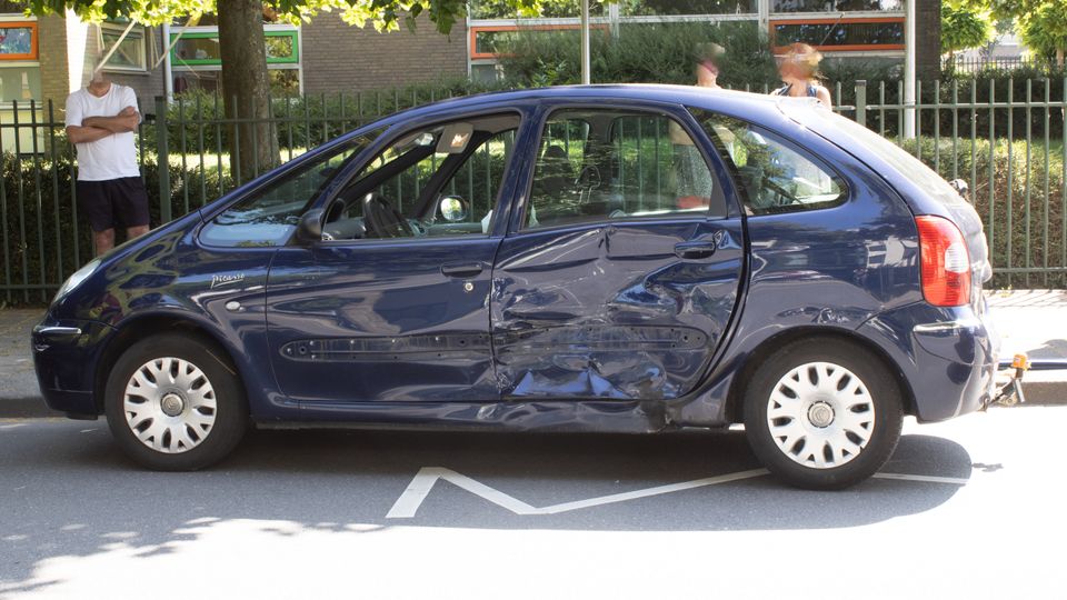 Door de botsing raakte de auto aan de zijkant beschadigd.