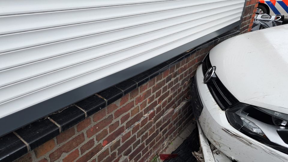 Aan het eind van de middag is maandag een Volkswagen Golf geëindigd tegen de gevel van een net verbouwde woning. De bestuurder zegt dat hij door een andere weggebruiker werd opgejaagd en aangereden.