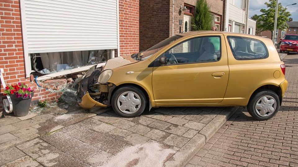 De schade aan de gevel en de woonkamer is groot. De politie doet onderzoek naar de toedracht van het ongeluk.