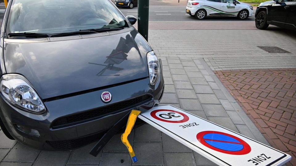 Donderdagmiddag is een auto tegen een verkeersbord gereden in Etten-Leur. Dat gebeurde op de kruising Anna van Berchemlaan met de Oude Bredaseweg.