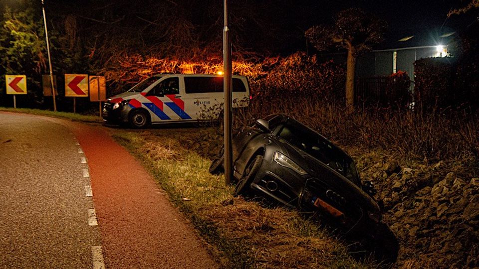 Auto belandt in sloot langs Moerstraatseweg maar bestuurder is spoorloos