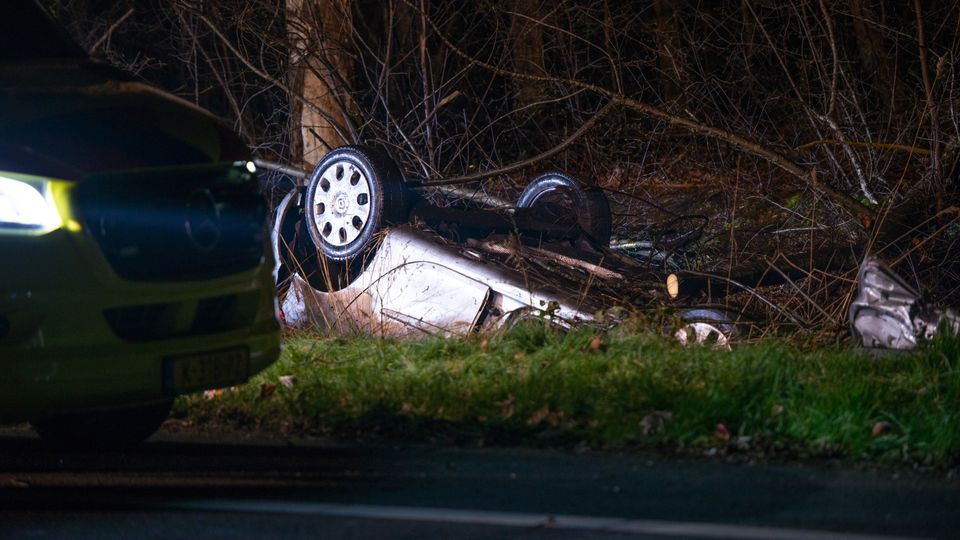 Auto vliegt uit de bocht en belandt in de sloot bij Bergen op Zoom, agenten vinden lachgas