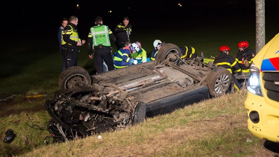 De bestuurder van een auto reed rechtdoor in een bocht en kwam hierbij in botsing met een boom. Hierna werd de auto gelanceerd en kwam vervolgens op zijn kop terecht in de sloot. Volgens de politie hebben mensen die het ongeval zagen gebeuren, de bestuurder en de bijrijder uit de auto gehaald.