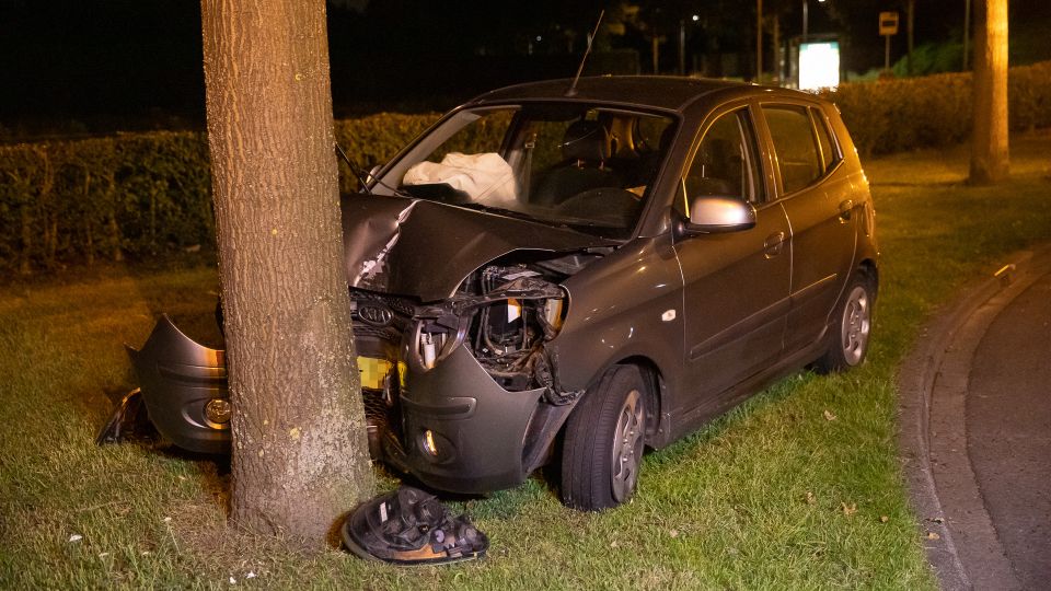 Auto zwaar beschadigd door botsing tegen boom in Roosendaal