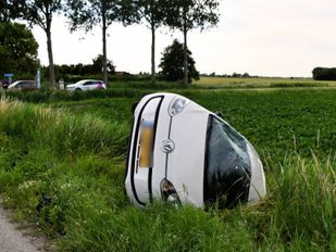 Automobilist belandt met hoge snelheid in sloot bij Oud-Vossemeer