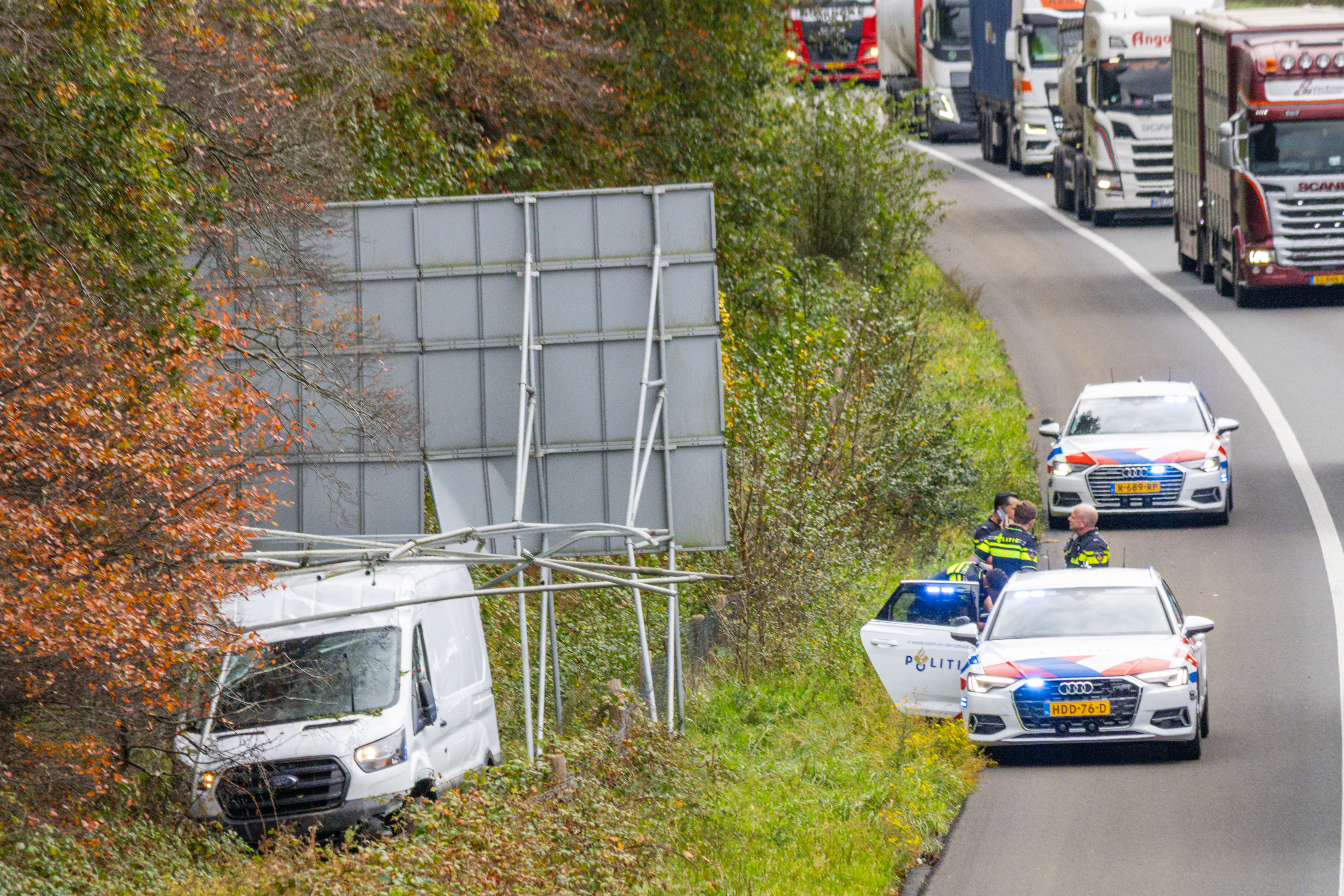 De politie heeft donderdagmiddag een bestuurder aangehouden na een eenzijdig ongeluk op de A4 bij Bergen op Zoom. Daarbij was de automobilist dwars door een verkeersbord gereden. De bestuurder is nog door ambulancepersoneel nagekeken, maar hoefde niet naar het ziekenhuis.