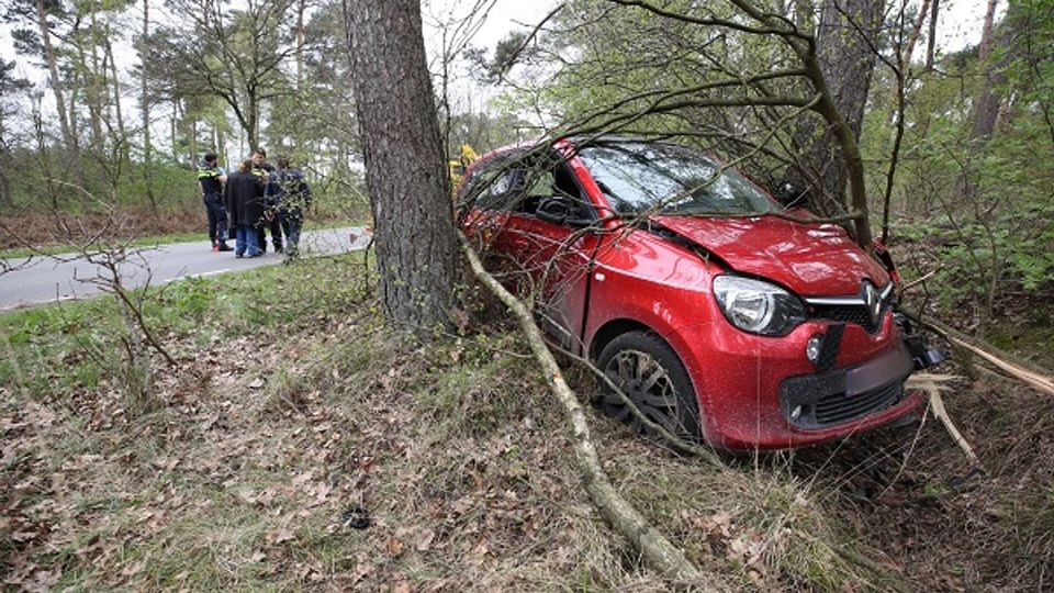 Automobiliste belandt tussen twee bomen op Huijbergsebaan