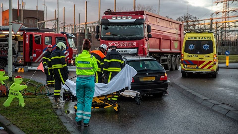 Automobiliste gewond na botsing met vrachtwagen in Roosendaal