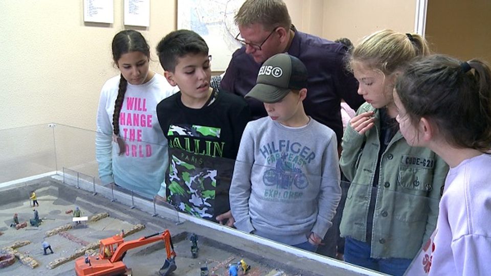 De kinderen kunnen in verschillende kamers een kijkje nemen. Met kunstwerken en vondsten uit de prehistorie en de tijd van Grieken en Romeinen, alles is aanwezig in het Archeologisch Depot te Bergen op Zoom. Ook wethouder Patrick van der Velden loopt een dagje mee. “Ik hoop vandaag wat bij te leren, net als de kinderen. Maar ik hoop vooral dat de kinderen wat warmer worden voor archeologie, want dat is nog steeds belangrijk deze tijd.”