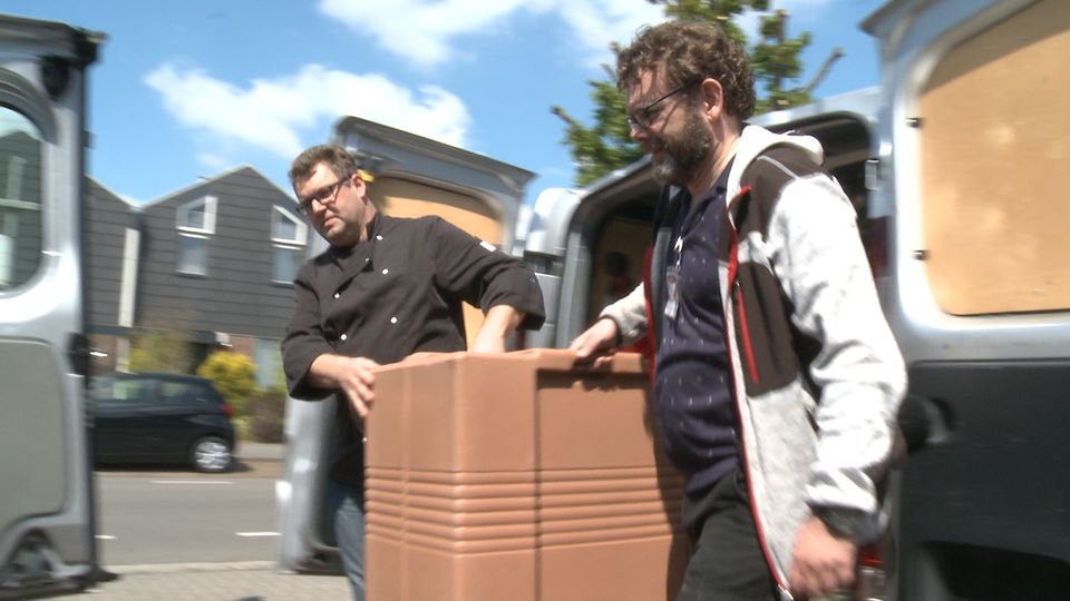 De eerste maaltijd werd symbolisch uitgedeeld door Lars van der Beek, wethouder in de gemeente Woensdrecht. De BWI in Woensdrecht, de Brede Welzijnsinstelling, helpt mee de maaltijden rond te brengen bij mensen die een minimum inkomen hebben. Van der Beek: “Maar bijvoorbeeld ook aan zorgboerderij De Leemberg hier, die ook partner is van Samen in de Regio. En waar de mensen die hier wonen en activiteitenbegeleiding doen overdag ook een maaltijd kunnen krijgen.” Ook Sardonos Promotions helpt mee de maaltijden rond te brengen. Net als de BWI hebben zij gekoelde wagens om het eten goed te houden.