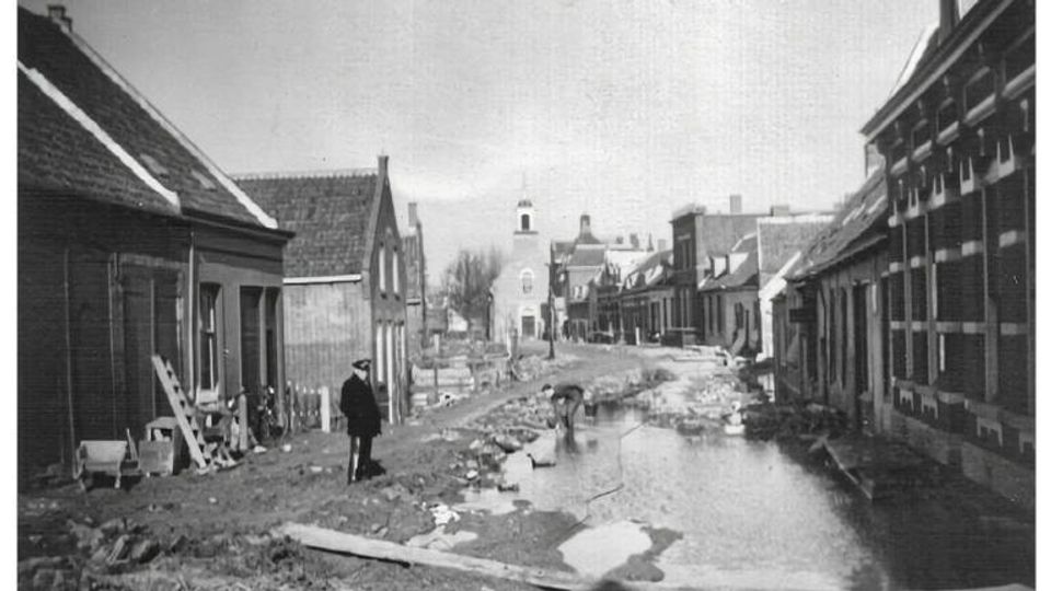 Nieuw-Vossemeer bleef niet gespaard bij de watersnoodramp (Foto: Heemkundekring Nieuw-Vossemeer).