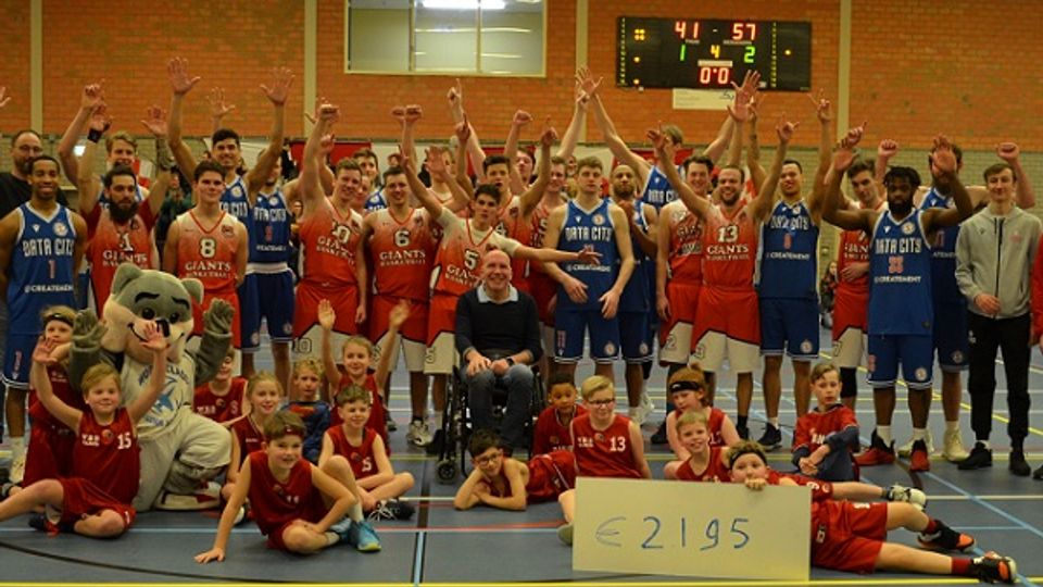 Heroes Den Bosch en WBB Giants vieren opbrengst van 2195 euro die later nog opliep tot 2695 euro