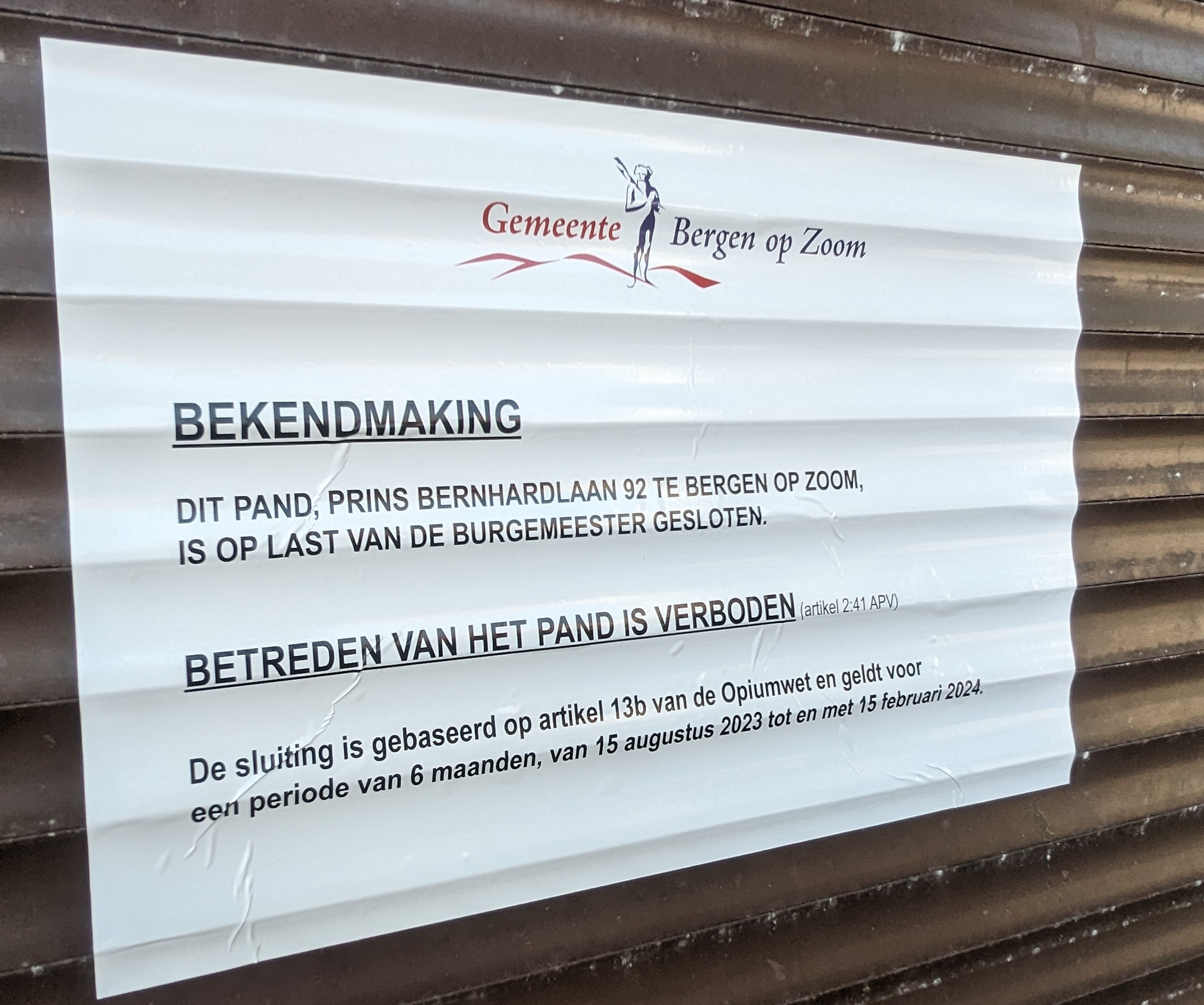 Bergs drugspand voor half jaar gesloten door burgemeester