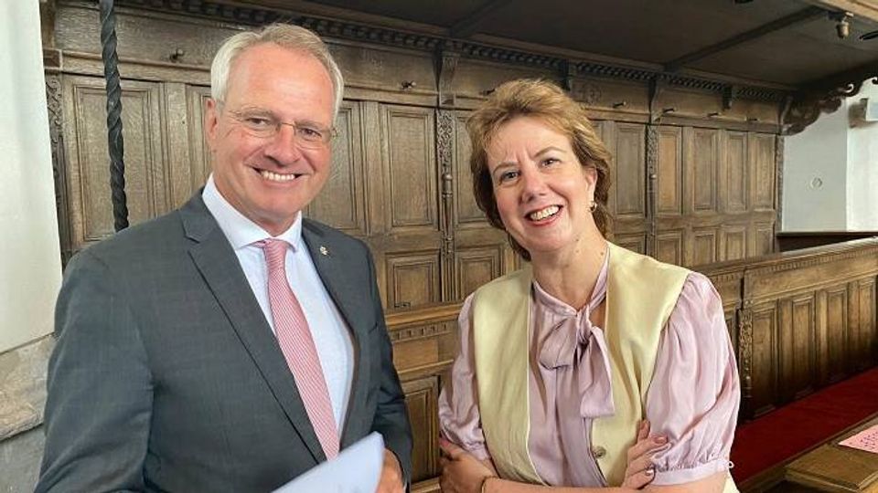 Oud-burgemeester Han Polman en de huidige Bergse burgemeester Margo Mulder. (Archieffoto: Streekomroep De Bevelanden)