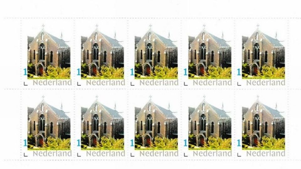 De Sint Catharinakapelzegel is een geldige frankeerzegel die per tien stuks op een postzegelvelletje zitten