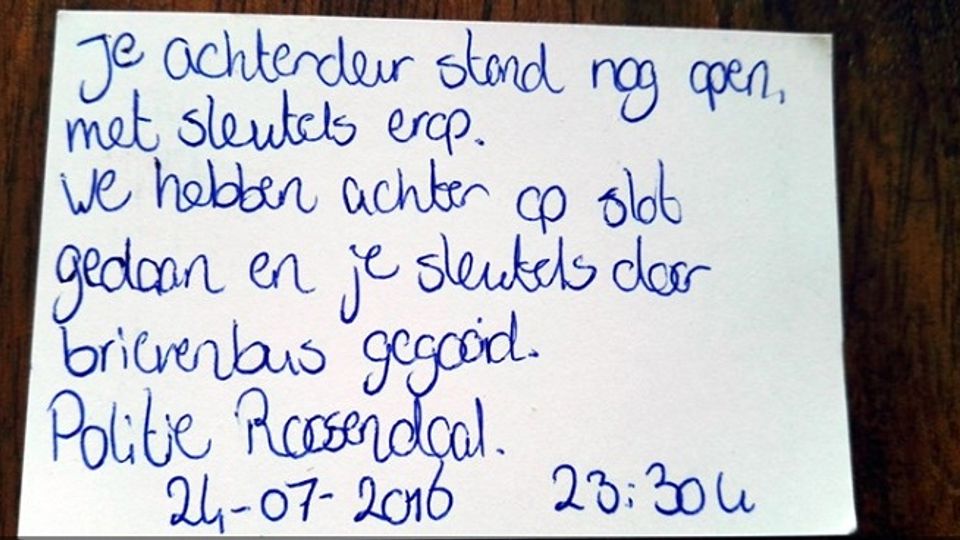 De politie is je beste vriend. Ook als je zelf een vergissing maakt, door bijvoorbeeld je achterdeur open te laten staan, met de sleutels erop. Het gebeurde in Roosendaal. Het bericht ging zelfs “viraal” op de populaire website Dumpert.