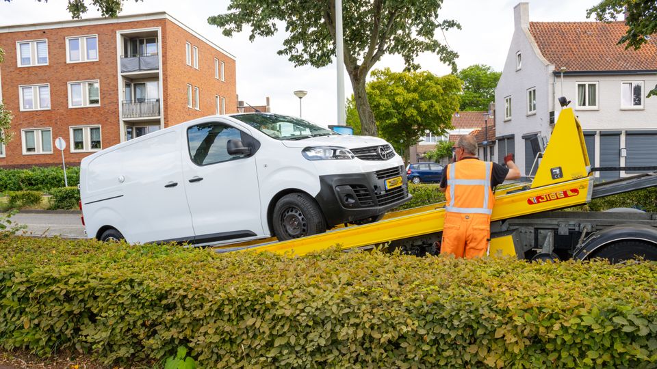Bestelbus botst op middengeleider Wouwsestraatweg, flinke olielekkage