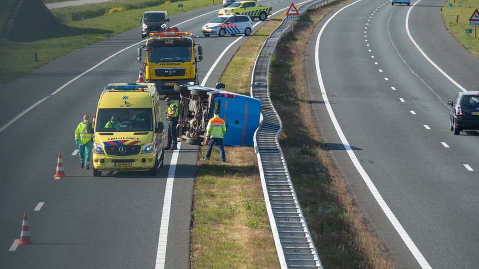 Bestelbus gekanteld bij ongeluk op de A4 bij Ossensdrecht