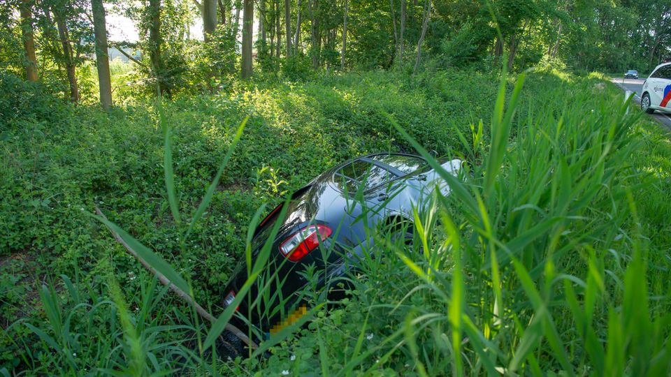Een auto is zondagavond in de sloot beland op de Nieuw Beijmoerseweg tussen Halsteren en Bergen op Zoom. Niemand raakte gewond.