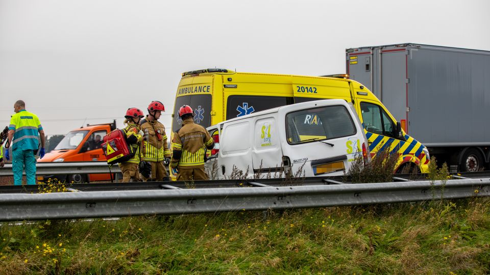 De bestuurder van de witte bestelbus raakte gewond. Hij is met een ambulance naar het ziekenhuis gebracht. De bestuurder van het andere voertuig kwam met de schrik vrij.