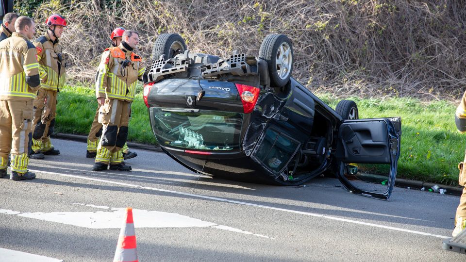 Donderdagmiddag heeft zich een ongeval voorgedaan op de kruising van de Willem Dreesweg en de Bergrand in Roosendaal. Twee voertuigen botsten op elkaar, waarbij één auto op zijn kop terechtkwam.