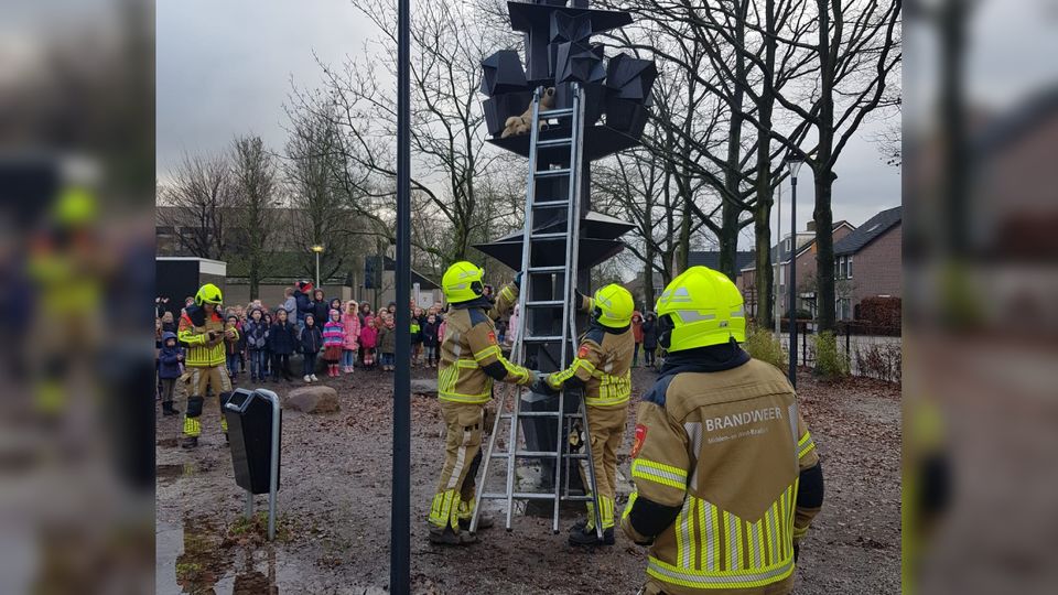 De melding kwam van een lerares van KPO Kindcentrum De Stappen aan de Kloosterstraat. Onder toeziend oog van een grote groep kleuters, die luid ‘Hup, brandweer’ riepen, haalde de brandweerlieden het stuk speelgoed met een ladder veilig en wel naar beneden.