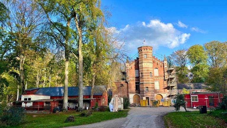 Vanaf de Putseweg kun je het aan het einde van de lange oprijlaan de bouwsteigers om de villa zien staan. Bouwvakkers lopen in en om het landhuis, dat zich met heuse kasteeltoren nog ouder voordoet dan 140 jaar.