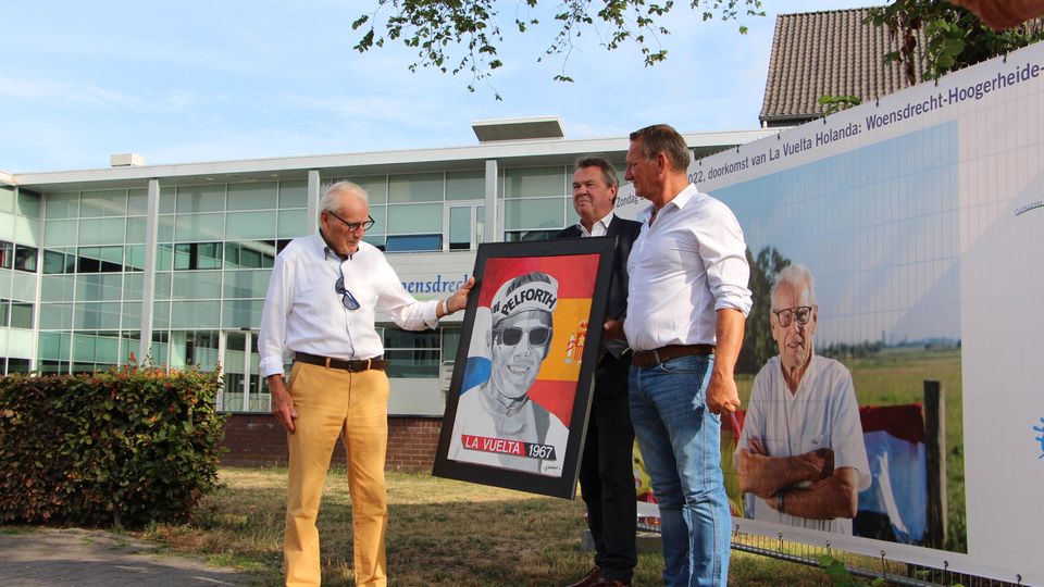 Een kunstwerk als eerbetoon aan oud-wielrenner Jan Janssen, geschilderd door een geheel ander soort veteraan uit de gemeente Woensdrecht. Dat is dit jaar dé blikvanger tijdens de doorkomst van de Vuelta. Donderdag overhandigde kunstenaar Gerrit Jan Weekhout het schilderij persoonlijk aan de voormalig wielrenner, in aanwezigheid van wethouder Rainier Schuurbiers.